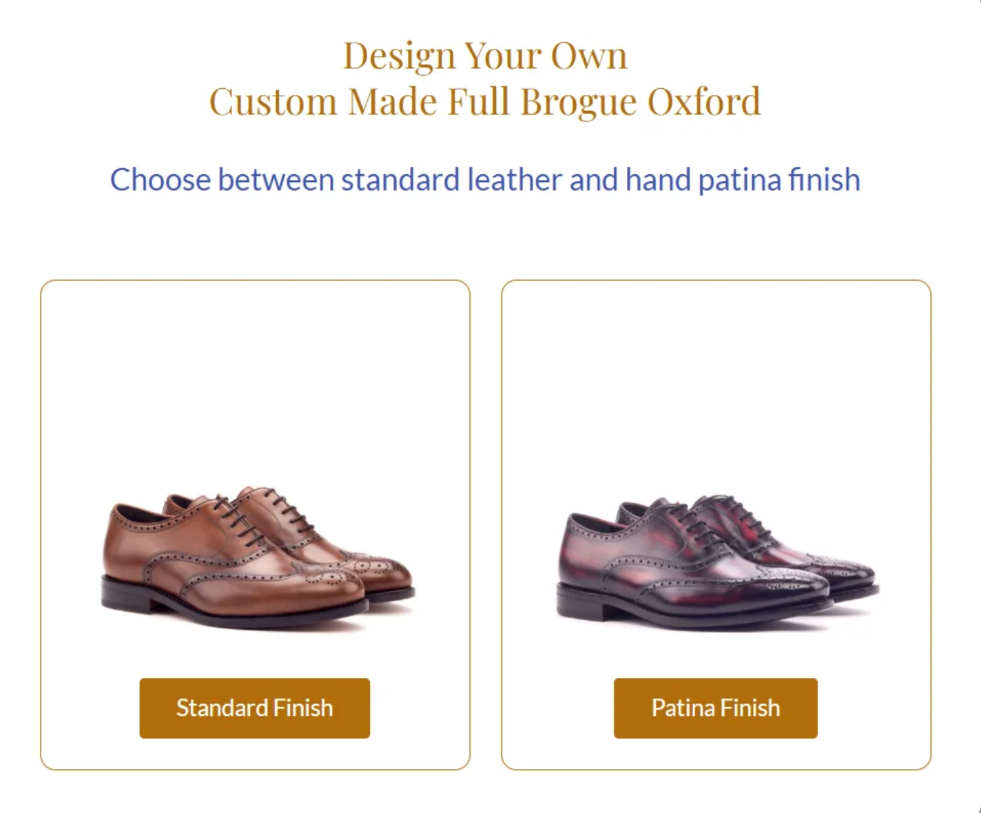 Shoe Styles: Full Brogue, Oxford, Loafer, Blucher, Single Monk, Double Monk, Derby, Wholecut