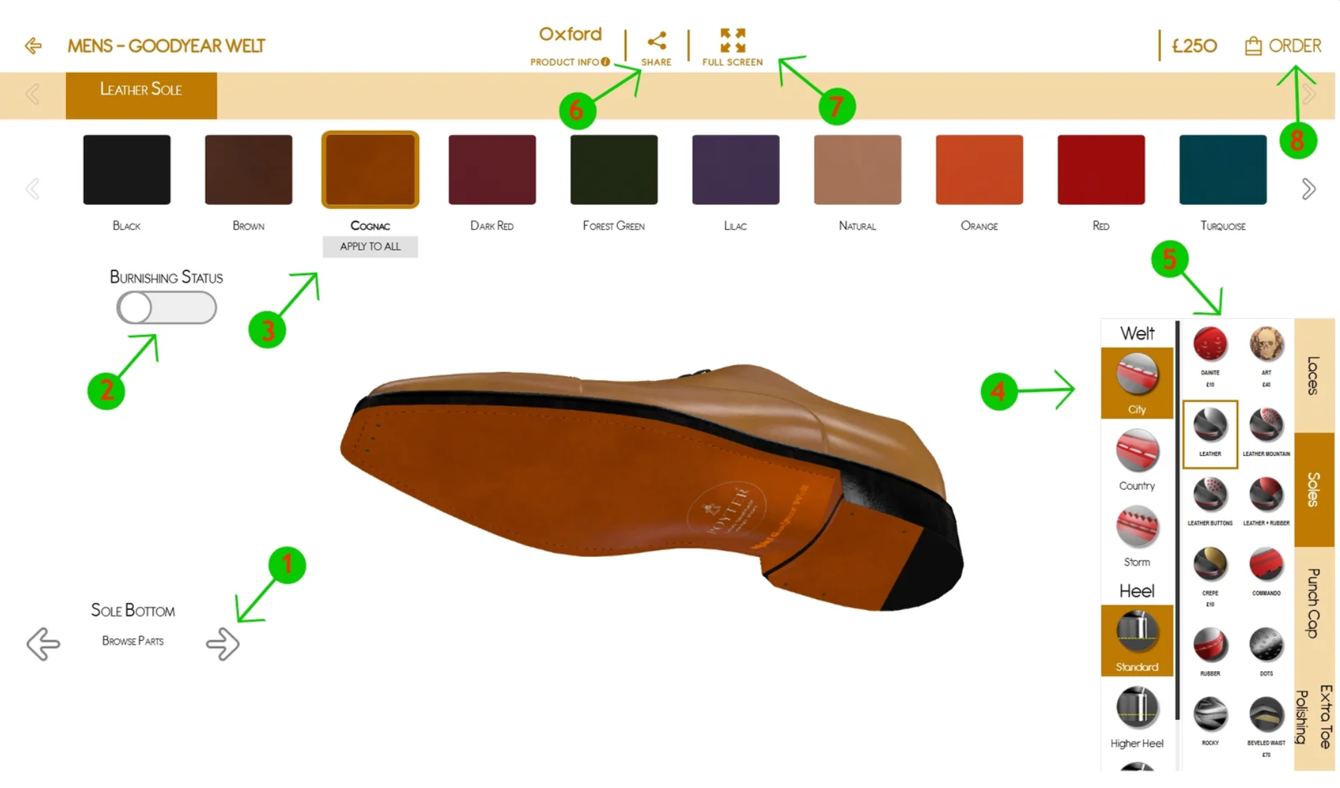 - Choose the type of sole (leather, Dainite, rubber, etc.).