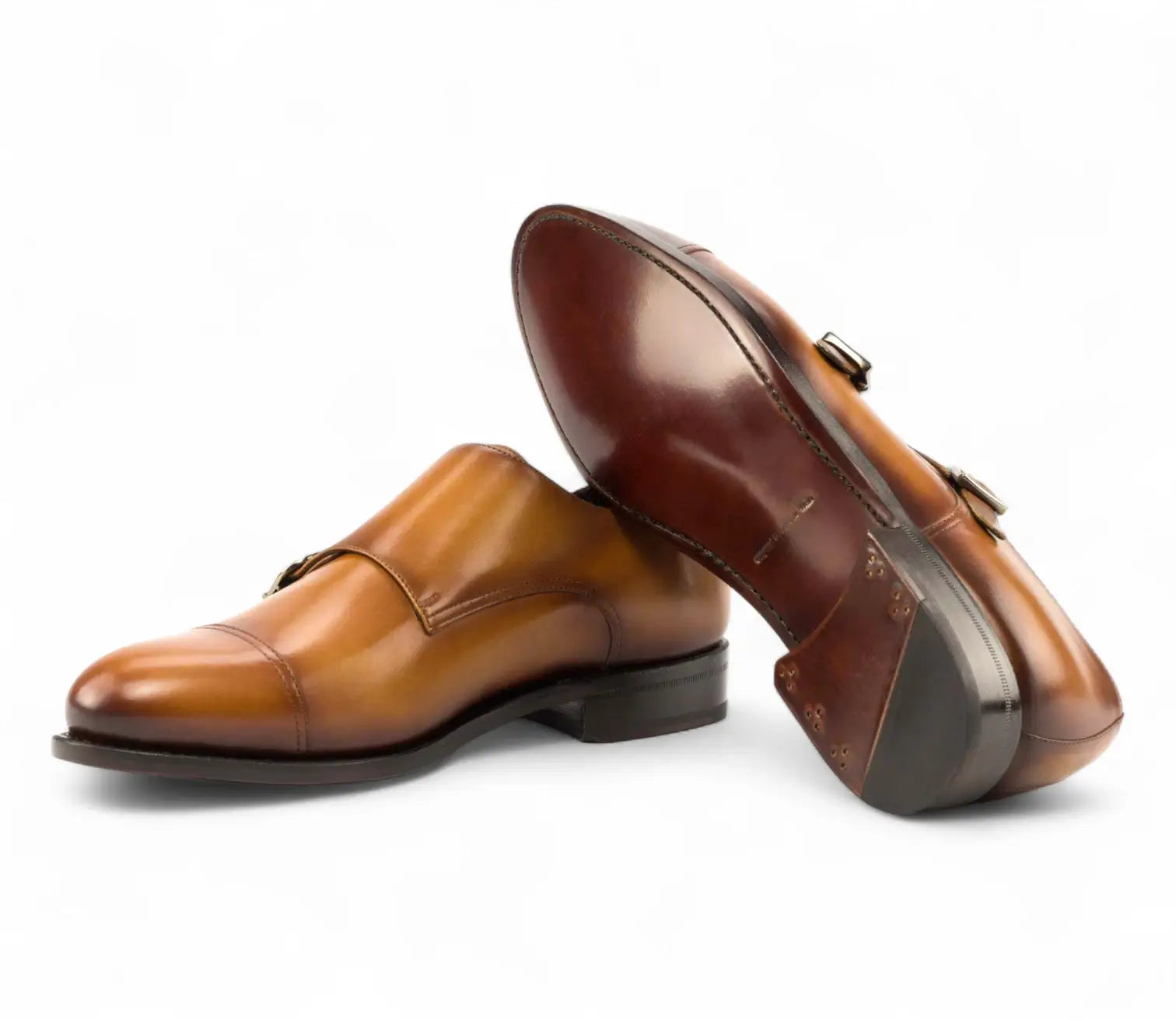 Handmade in Spain in burnished Lux Calf Leather, the Tan Double Monk adapts elegantly to seasonal wardrobes. Choose Leather Soles for sleek formality, Rubber for durability, or a Combination Sole for adaptable wear. Offered in regular and wide fittings with half sizes.