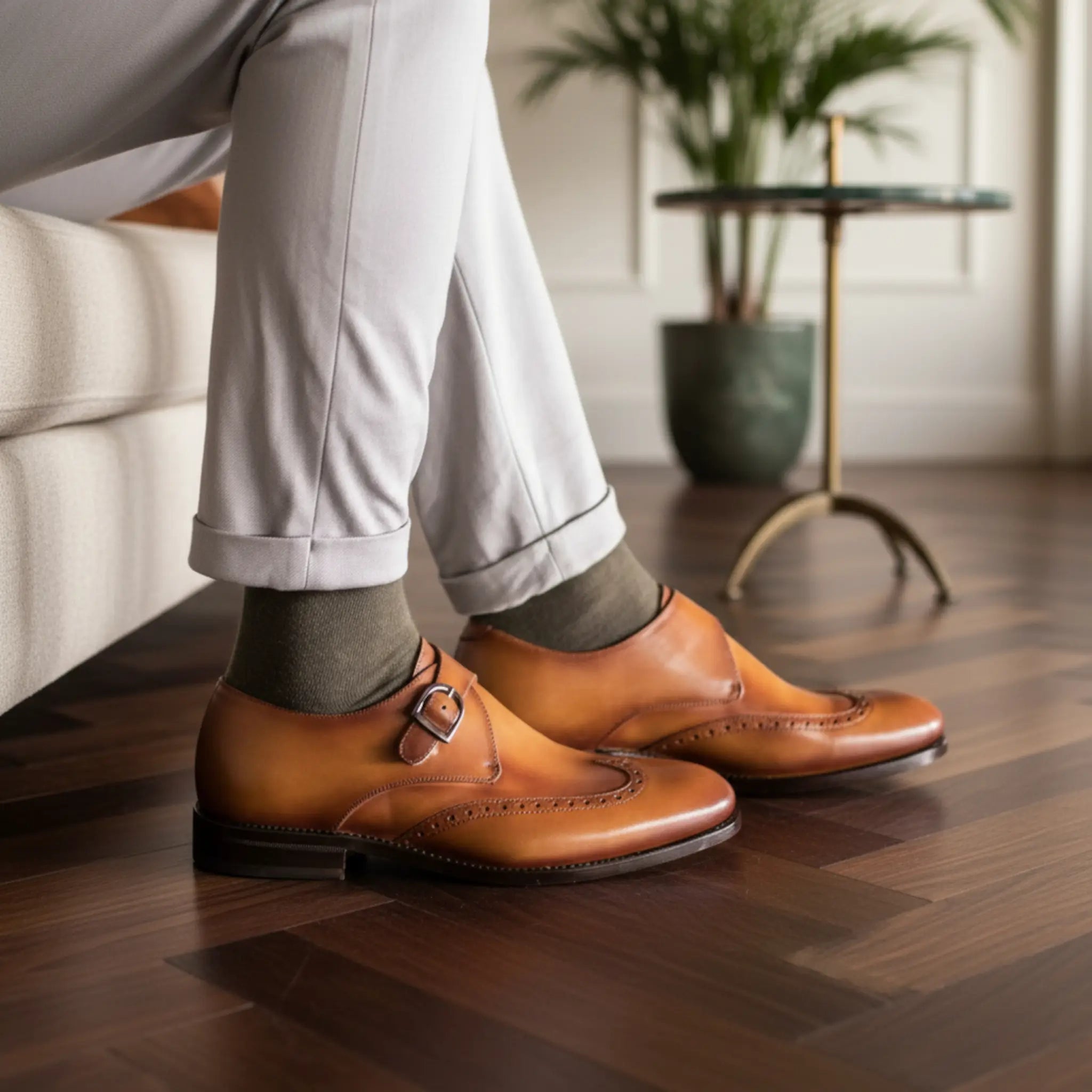 Modern simplicity meets heritage craftsmanship in the handmade Single Monk from Poyter. Crafted from premium crust calf leather, hand-painted and hand-polished to an English tan patina with refined tonal contrast. The single buckle and subtle broguing define its poised silhouette with enduring character. A contemporary classic shaped with meticulous care.