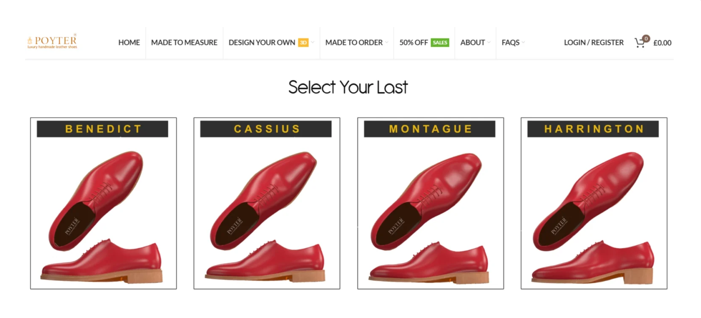 Start by choosing the shoe or boot style you’d like to customise. Here’s what we currently offer:
