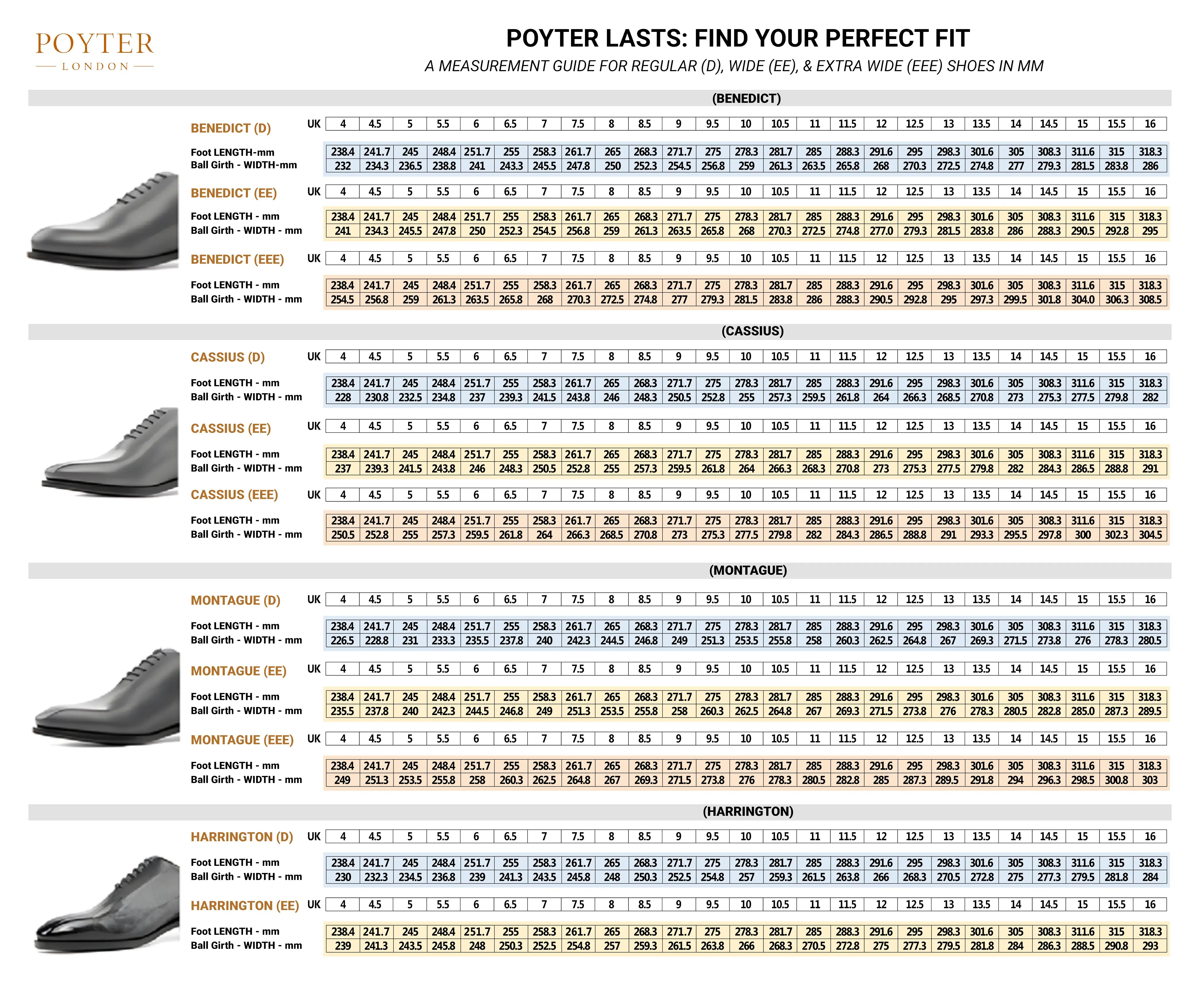 Simply measure your foot length and ball girth, then match them with our size chart below. If they align, you’re ready to design your perfect pair in any style, leather, or sole combination, with confidence in the fit.