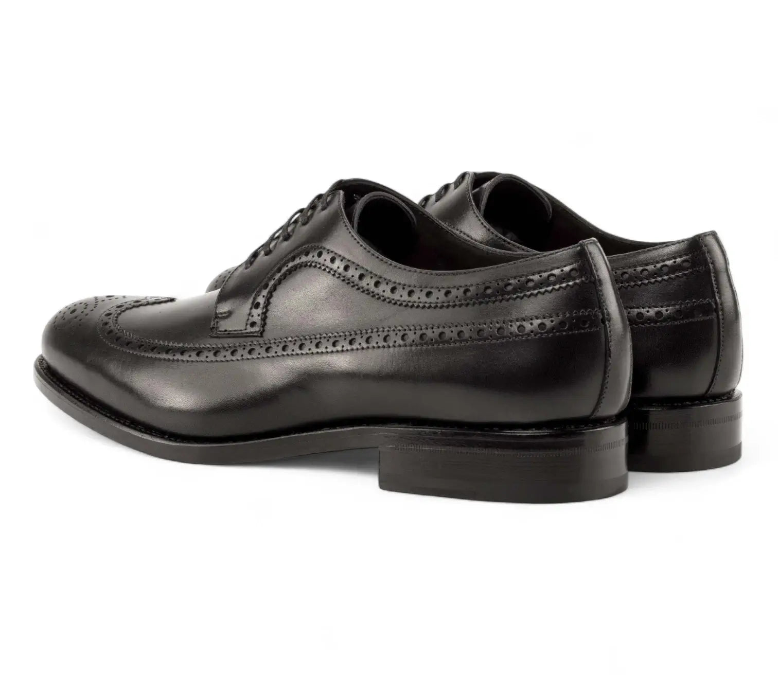 Combining the strong wingtip pattern with a sleek black finish, our Black Longwing Blucher is handmade in Spain from Lux Calf Leather. Opt for a Leather sole for timeless elegance, a Rubber sole for durability and grip, or a Combination sole for flexible comfort. Available in regular, wide and half sizes.